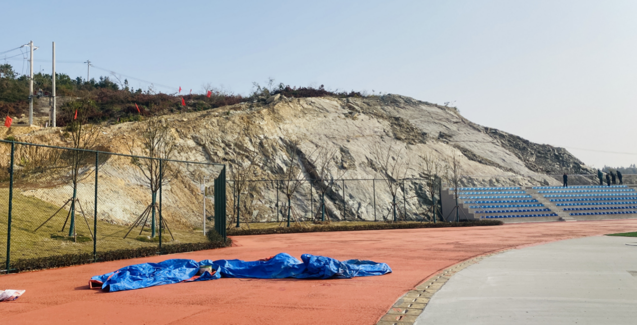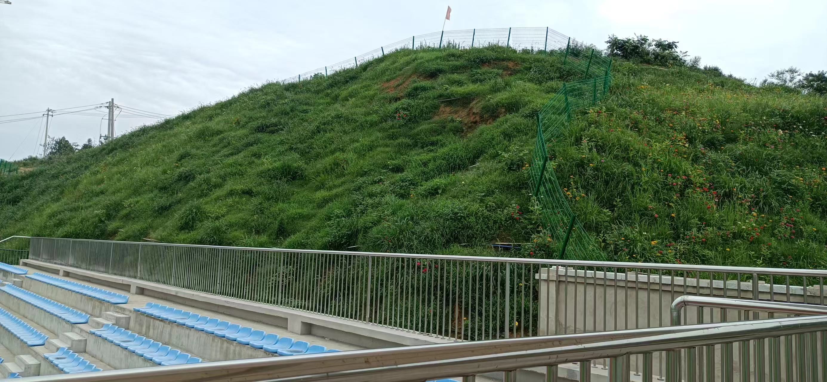 武漢商貿職業(yè)學院紅安校區(qū)足球場邊坡綠化工程項目-植被混凝土混合基材噴播↓